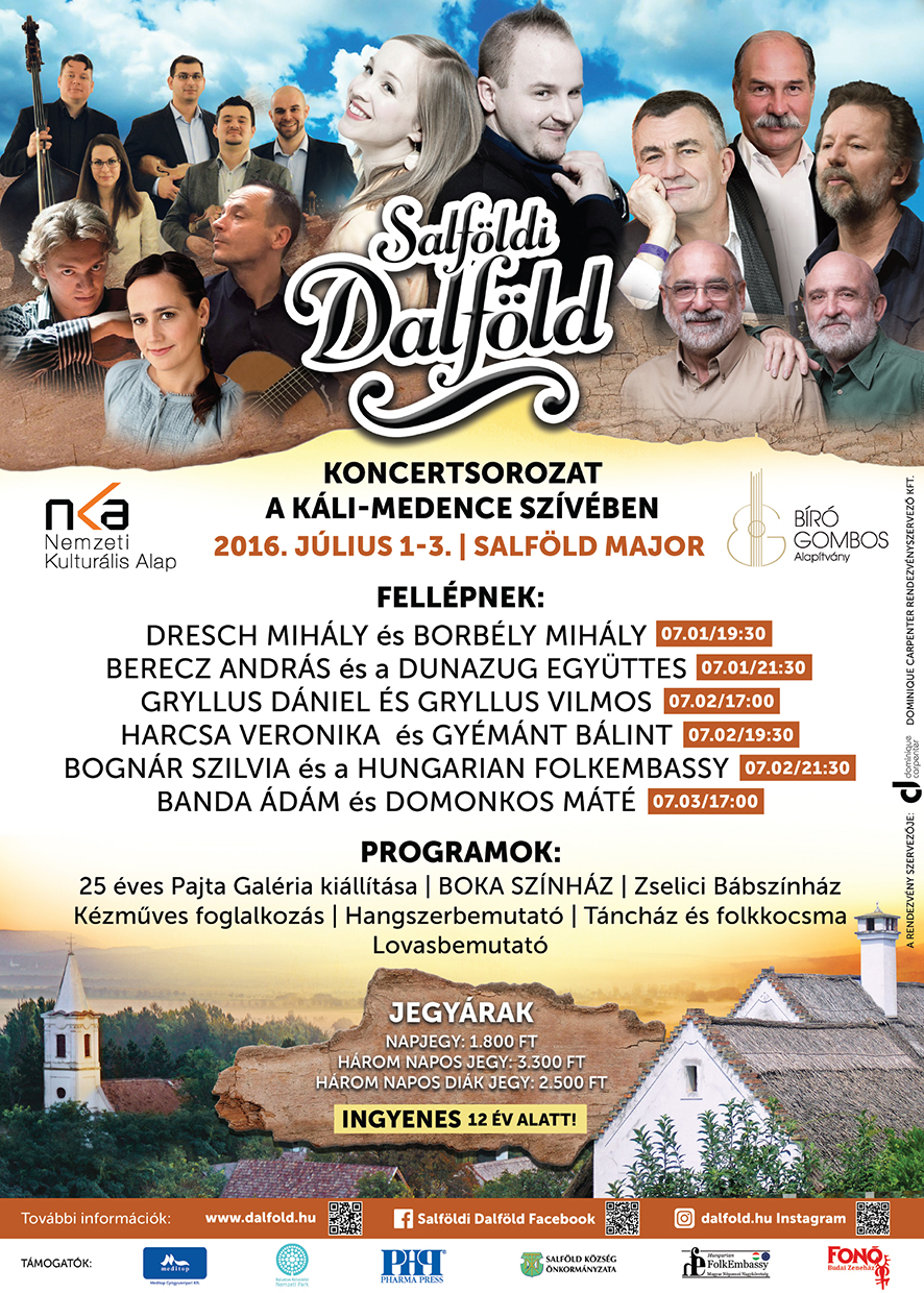 A Bíró-Gombos Alapítvány támogatásával a Dominique Carpenter Kft. szervezésében 2016. július 1-3. között került megrendezésre a Salföldi Dalföld.