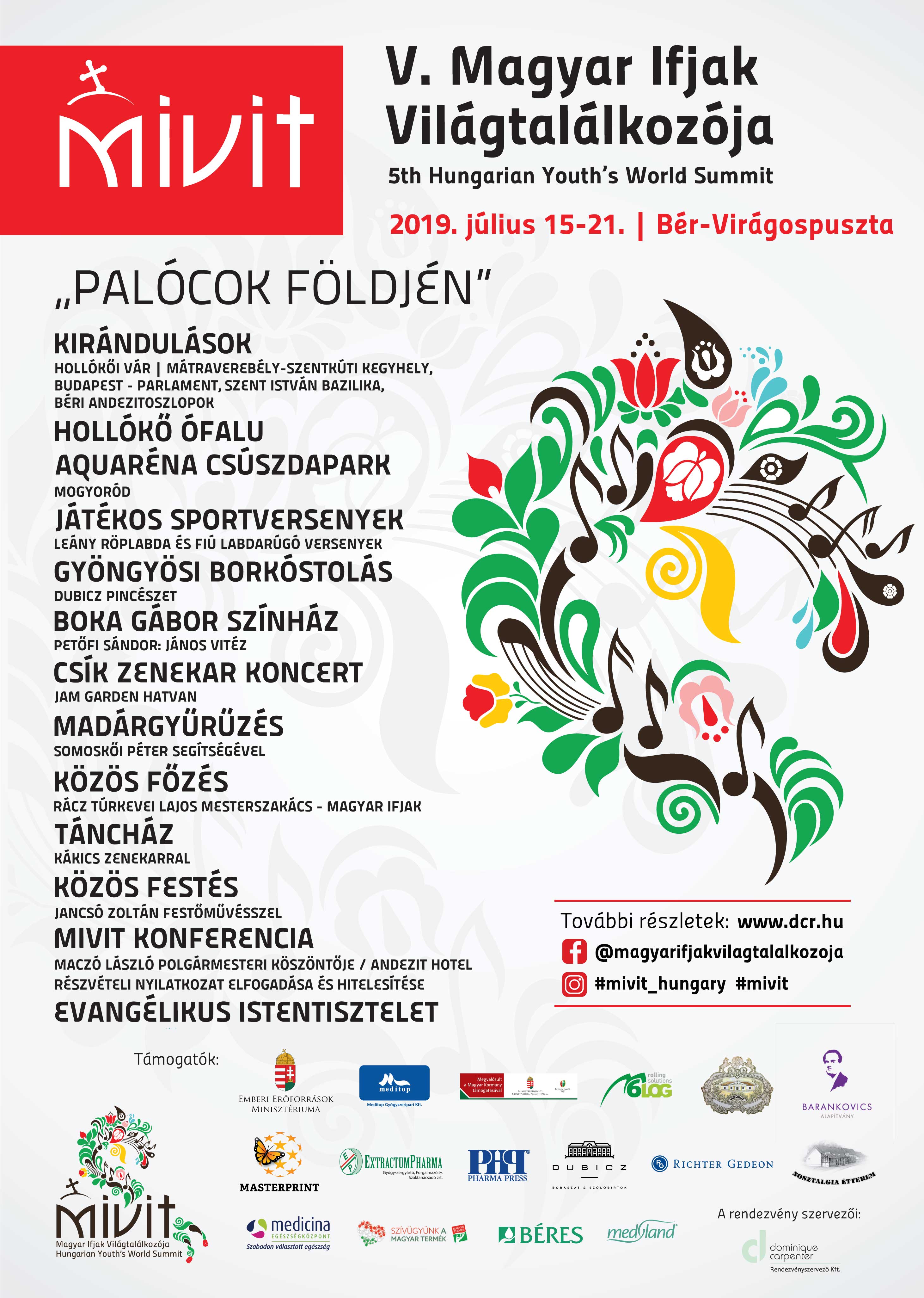 2019. július 15. és 21. között anyaországi és határon túl élő „Magyar Ifjak” részvételével Bér-Virágospusztán került megrendezésre a V. Magyar Ifjak Világtalálkozója a „Palócok földjén”.